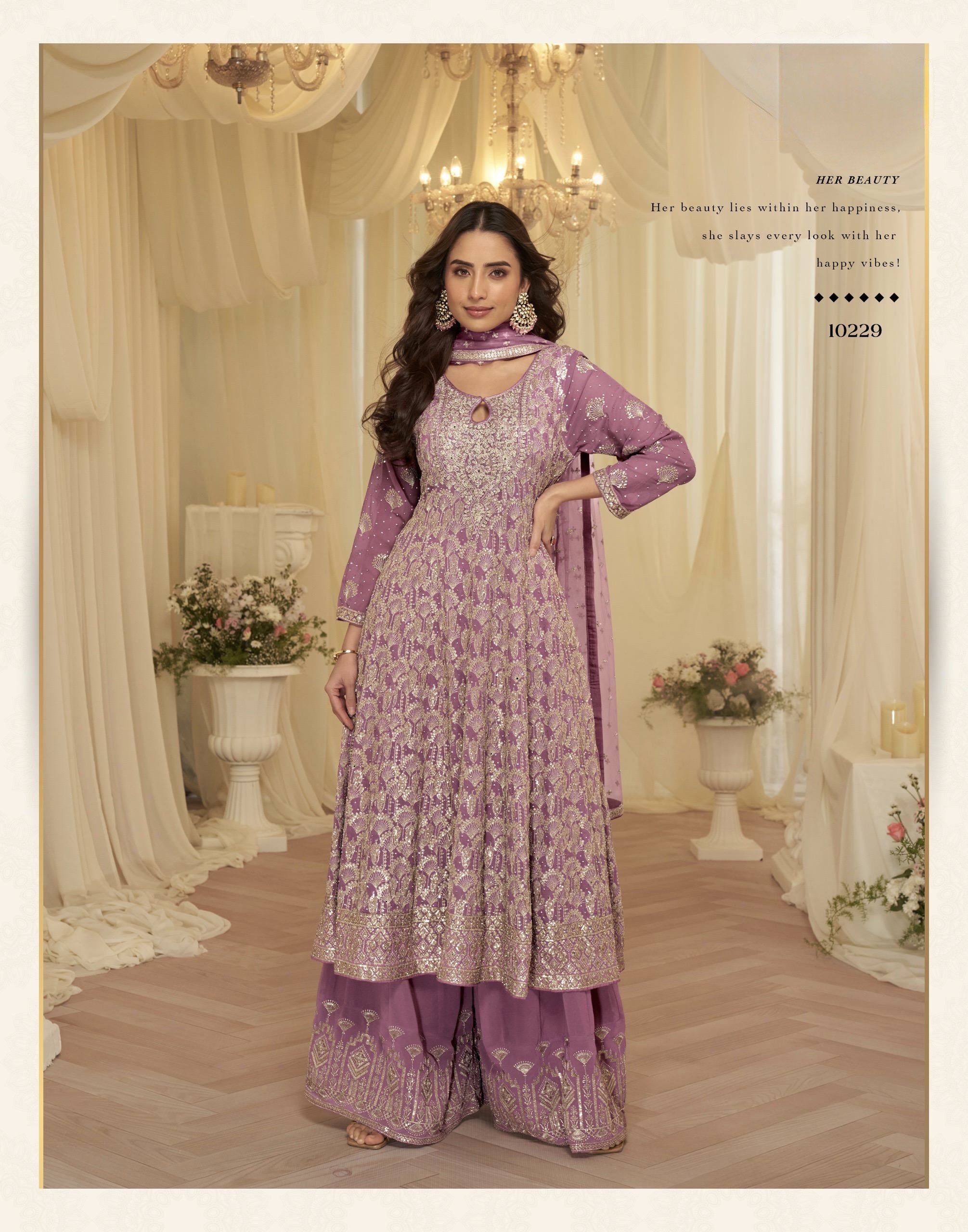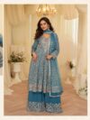 FABRIC PREMIUM REAL GEROGETTE FULL HEAVY LOOK EMBROIDERED SEROSKI ZARKAN TOP WITH PLAZOO AND EMBROIDERED DUPATTA
