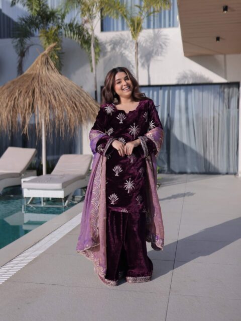 FABRICS & WORK Ice Velvet with Rich Zari Embroidered work