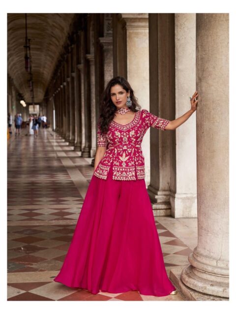 FABRIC – PREMIUM REAL ORGANZA SILK ( TREDY WEDDING LOOK FRONT AND BACK EMBROIDERED TOP WITH PLAZOO AND EMBROIDERED DUPATTA